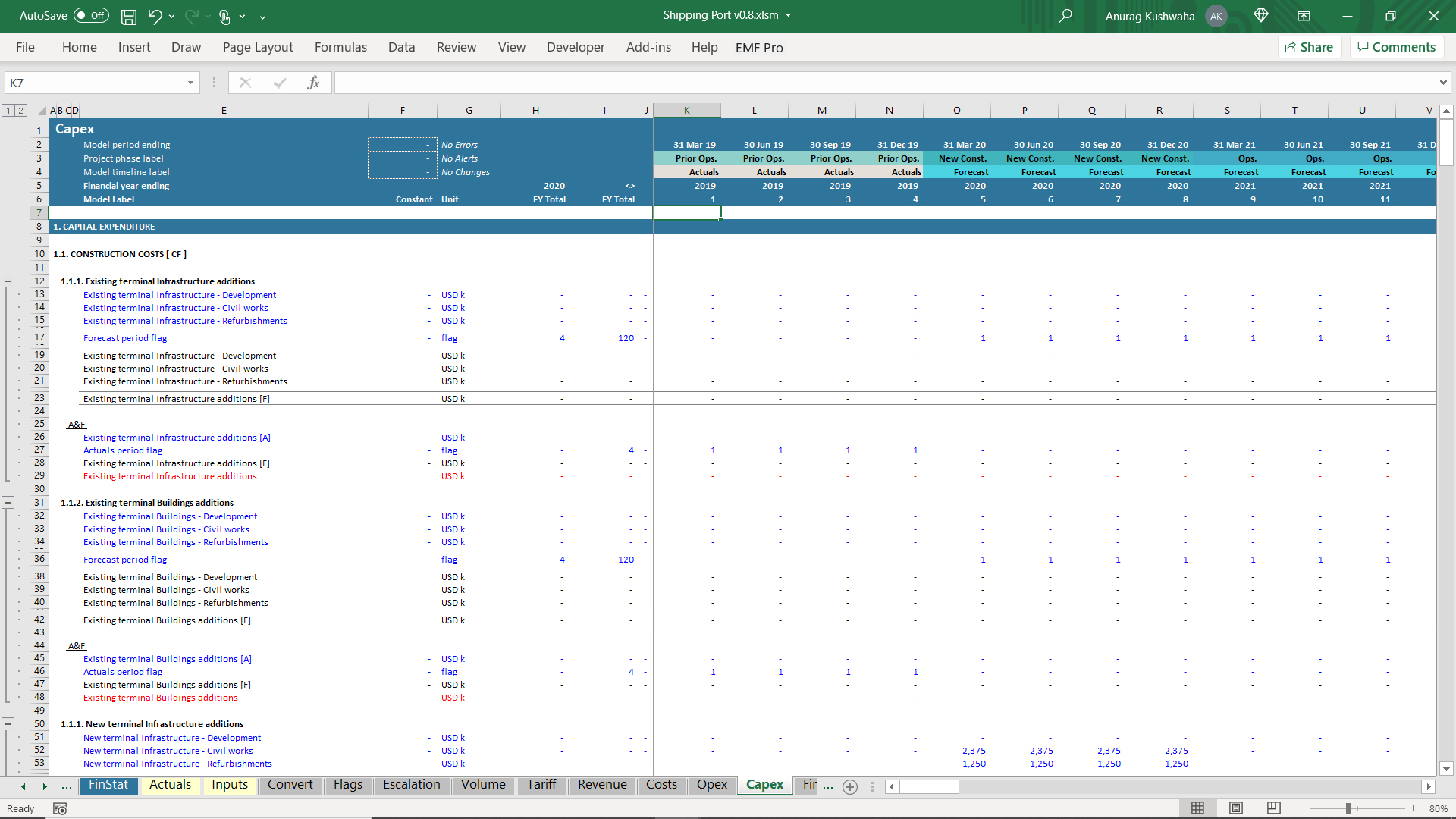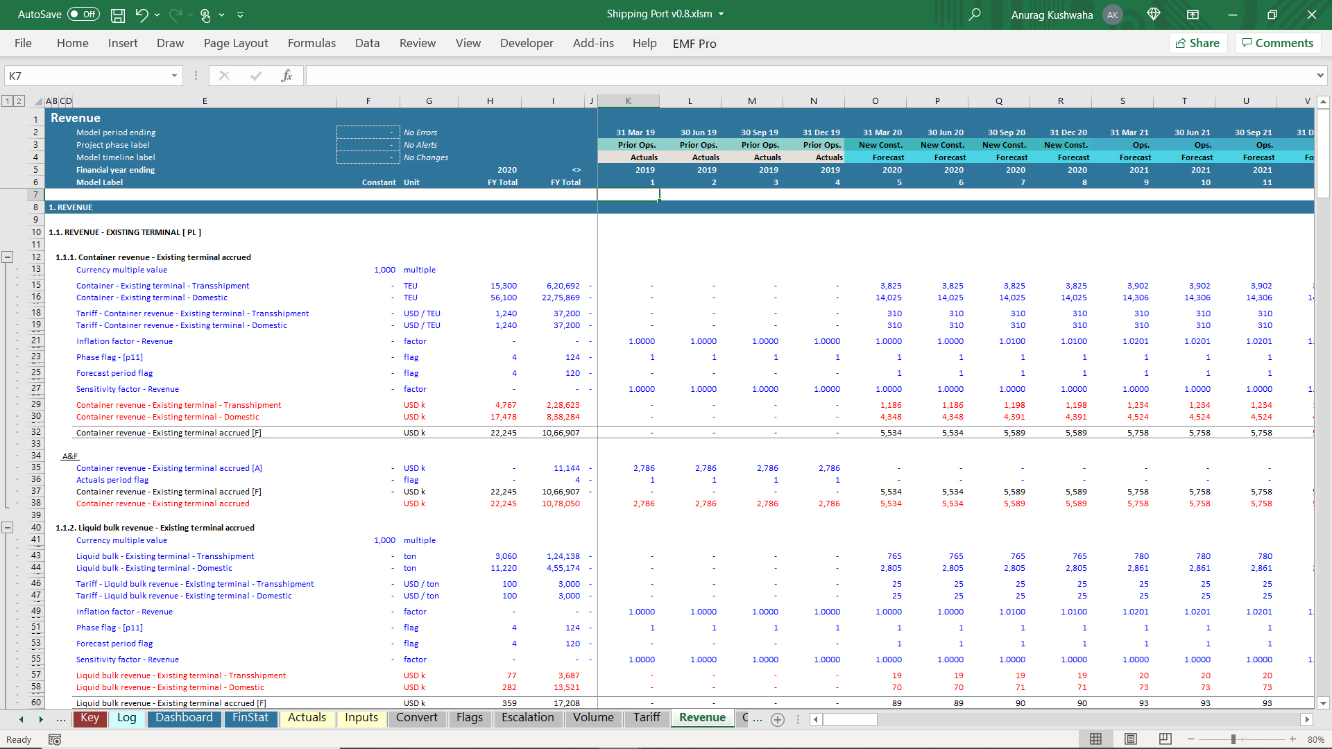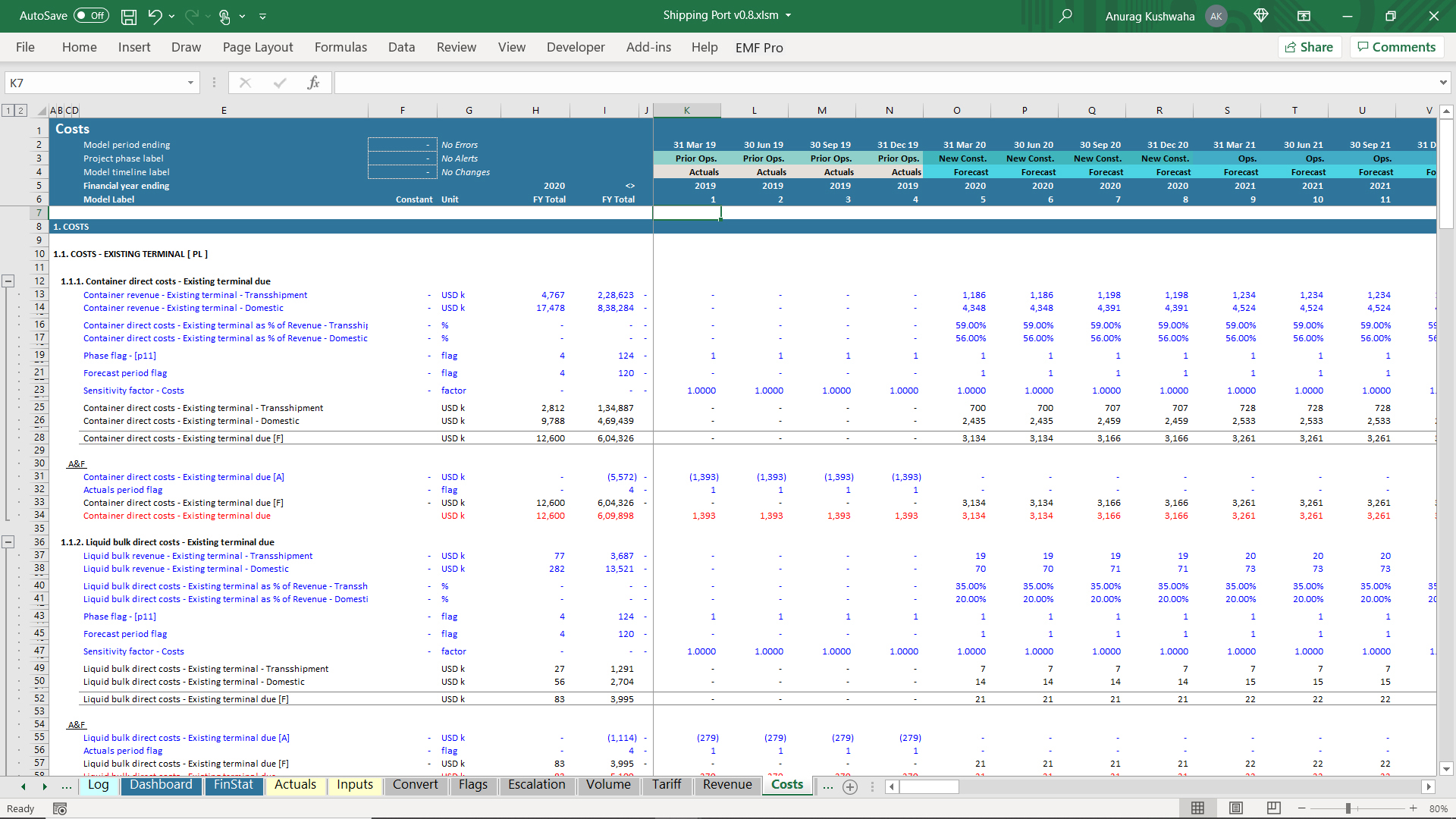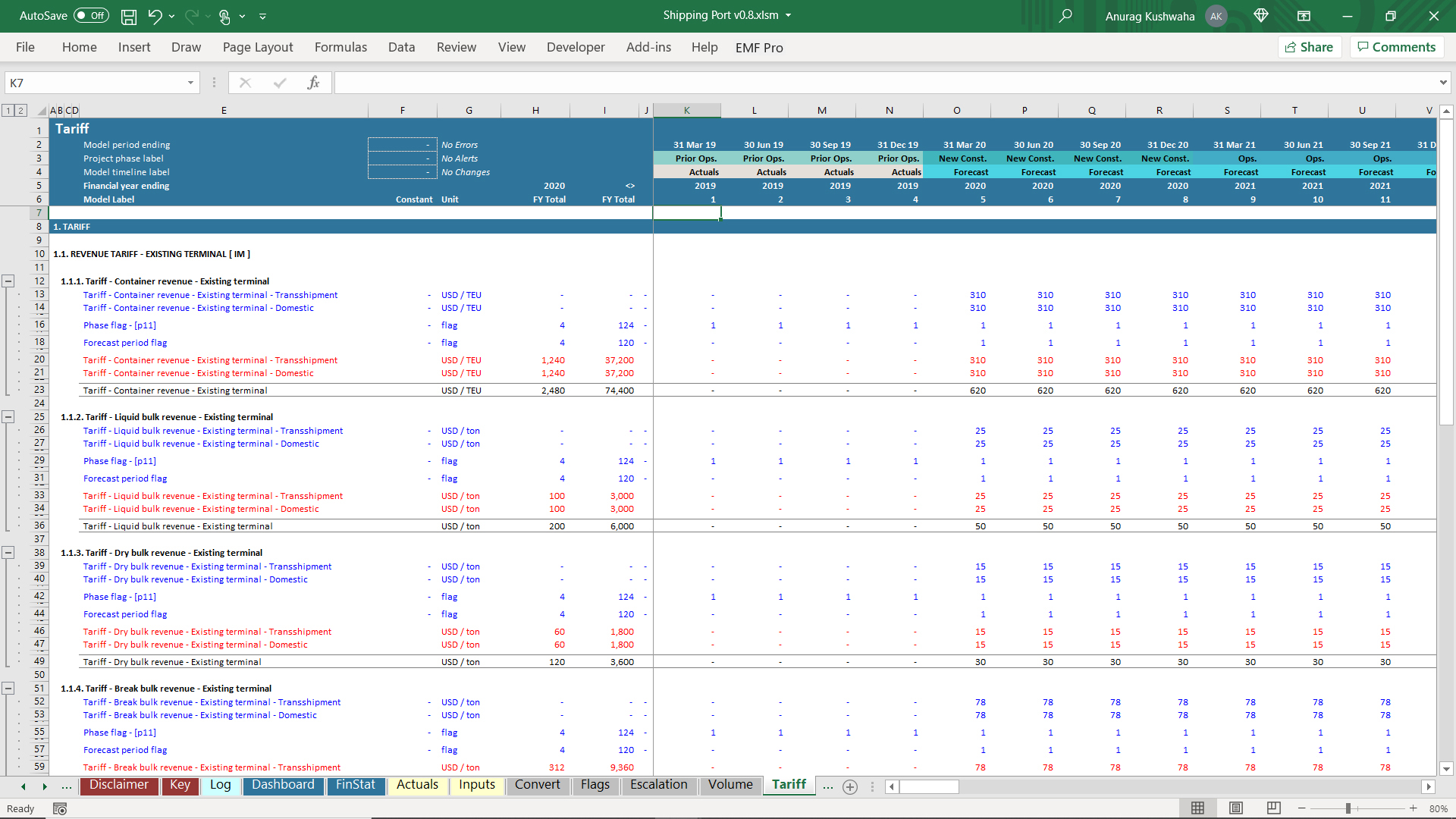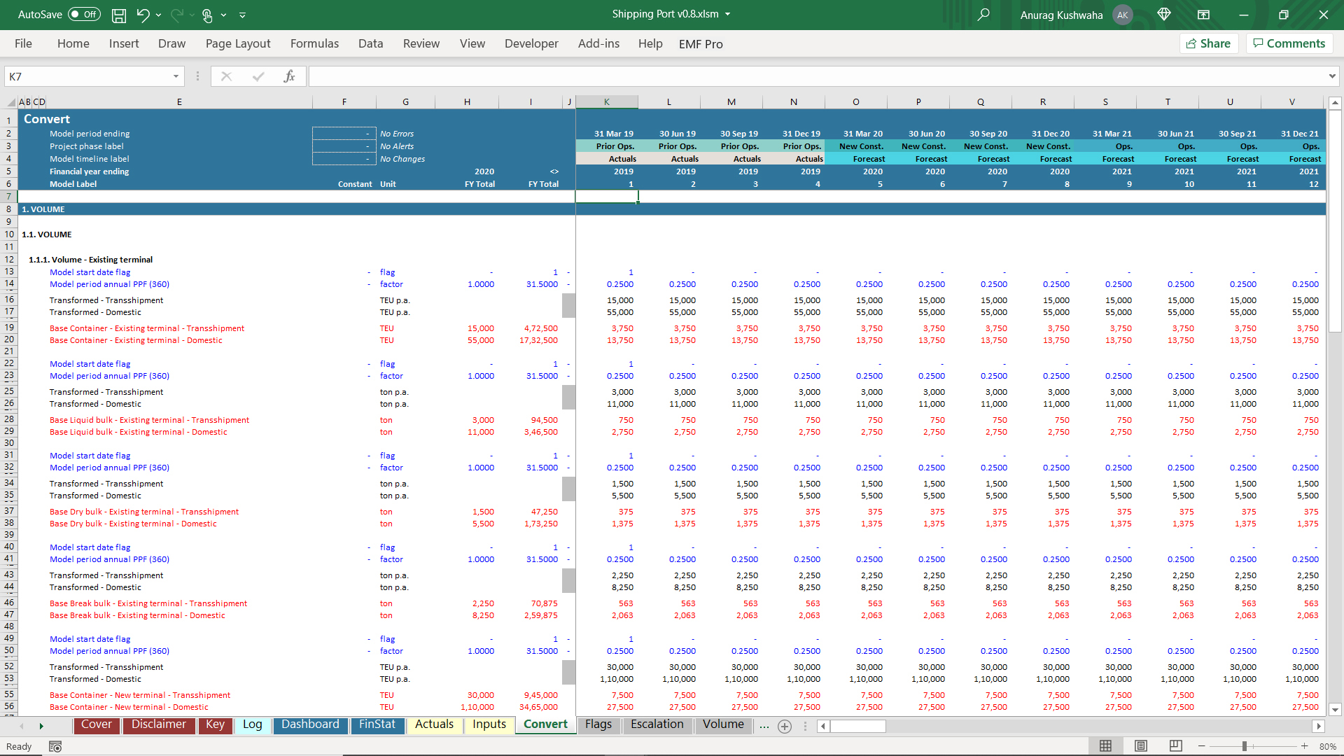 1. The model has 1 year Actuals and assumes the port to be operational, and a new terminal needs to be built.