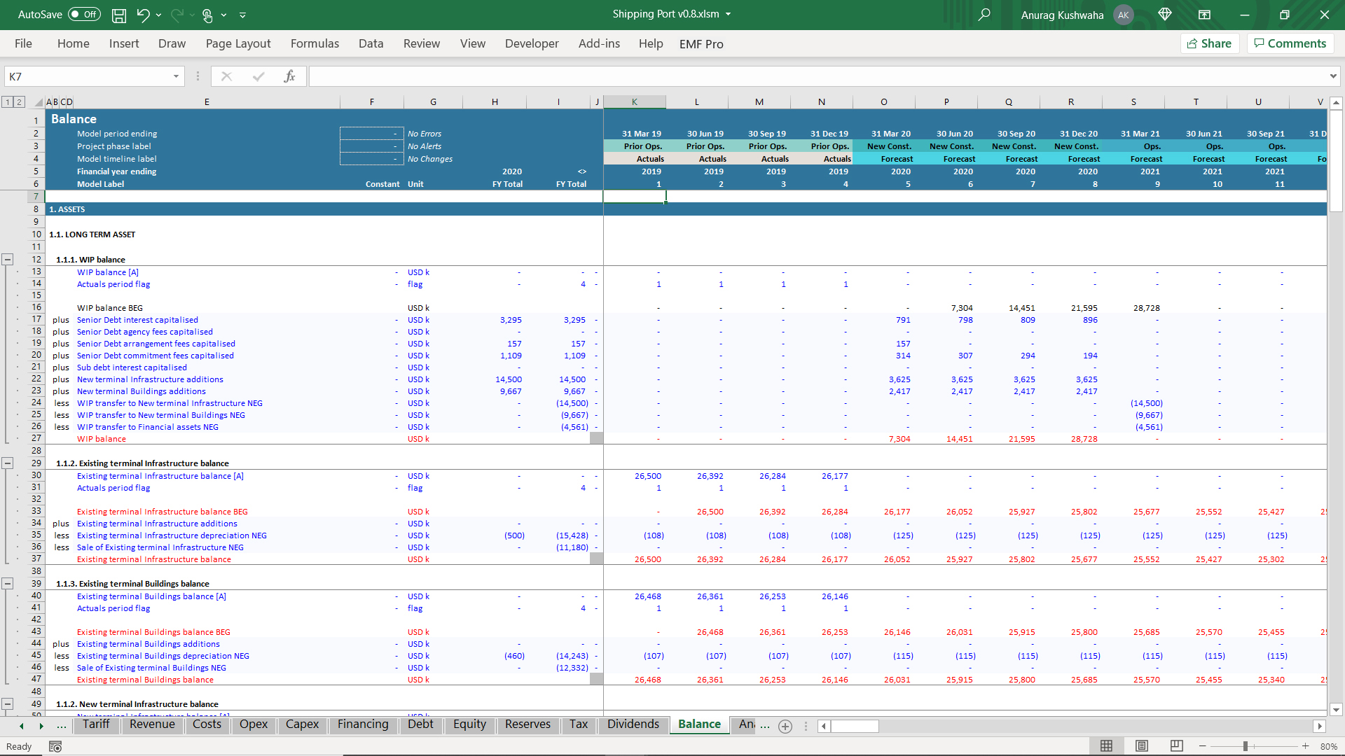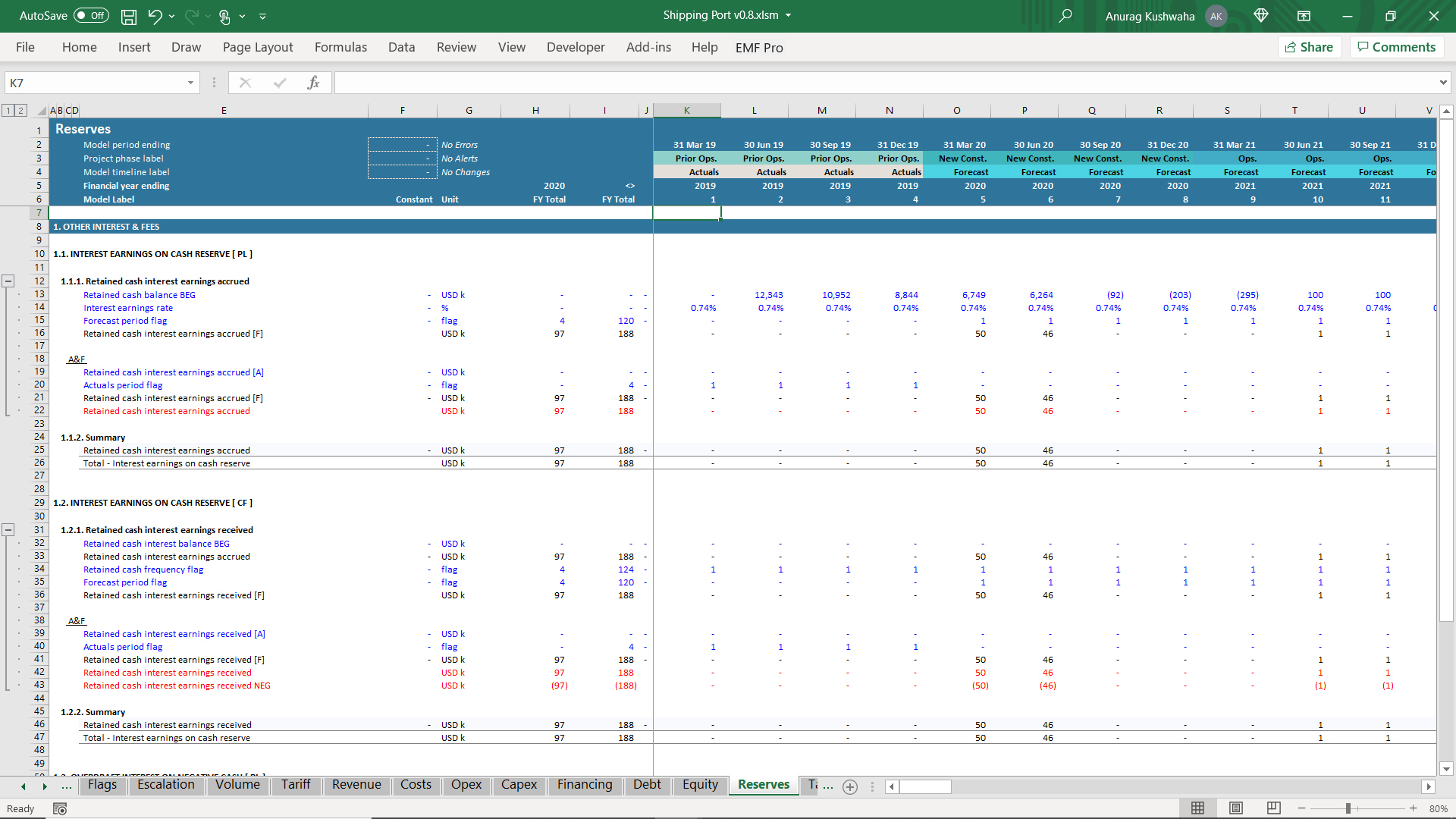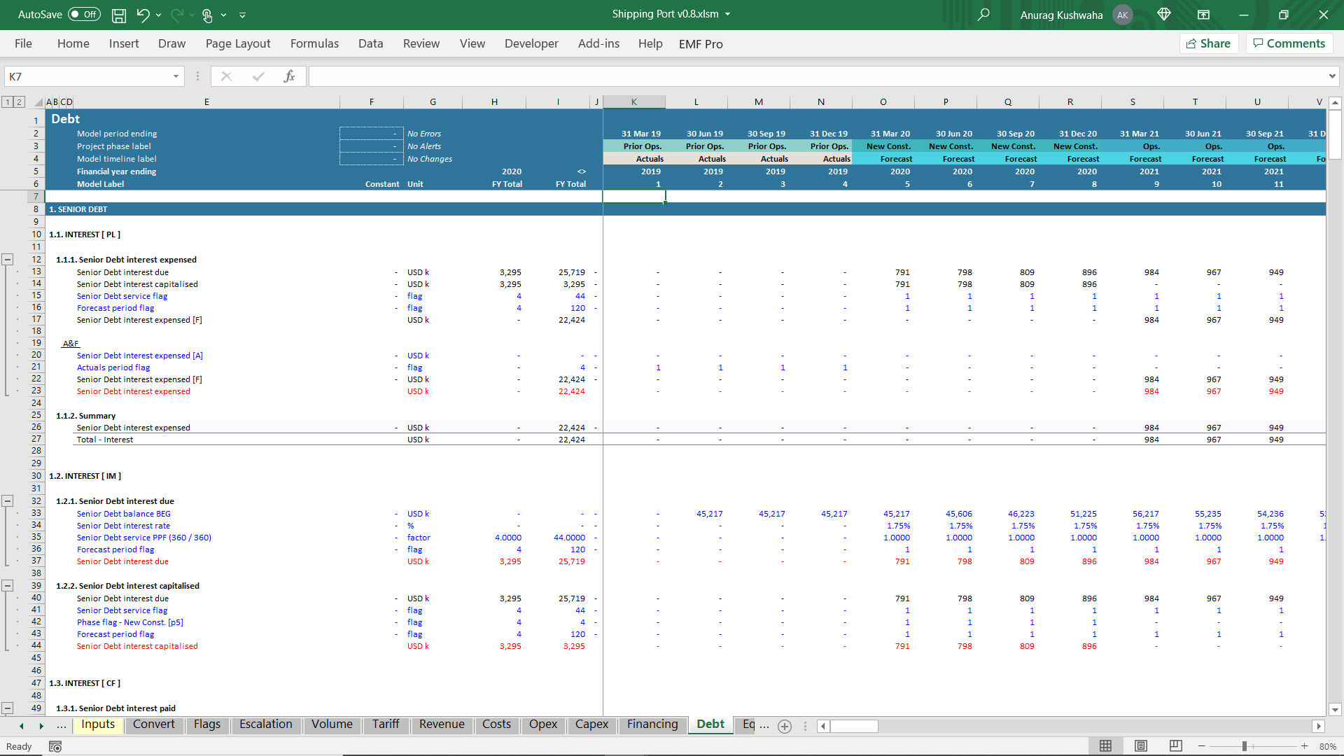 This is an excel model created for shipping port project, and was created using financial automation tool 'Ampere'. The model has the following features