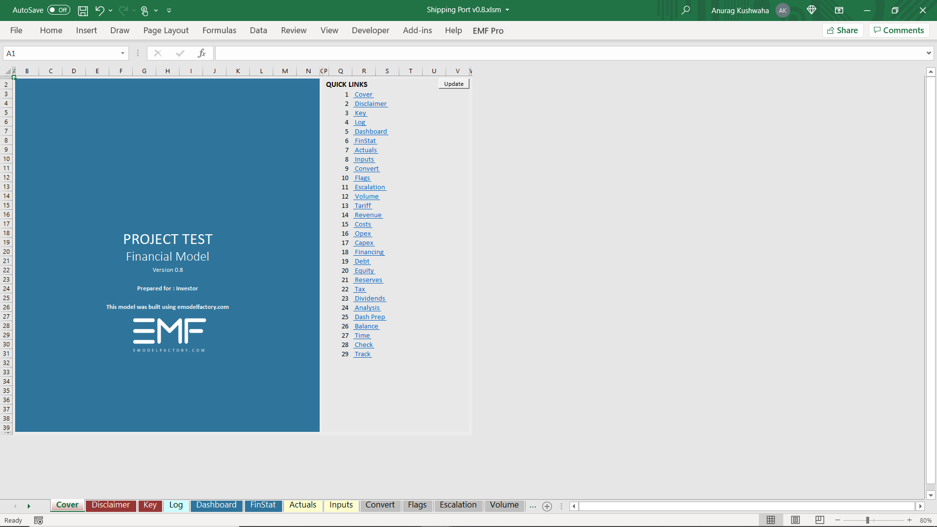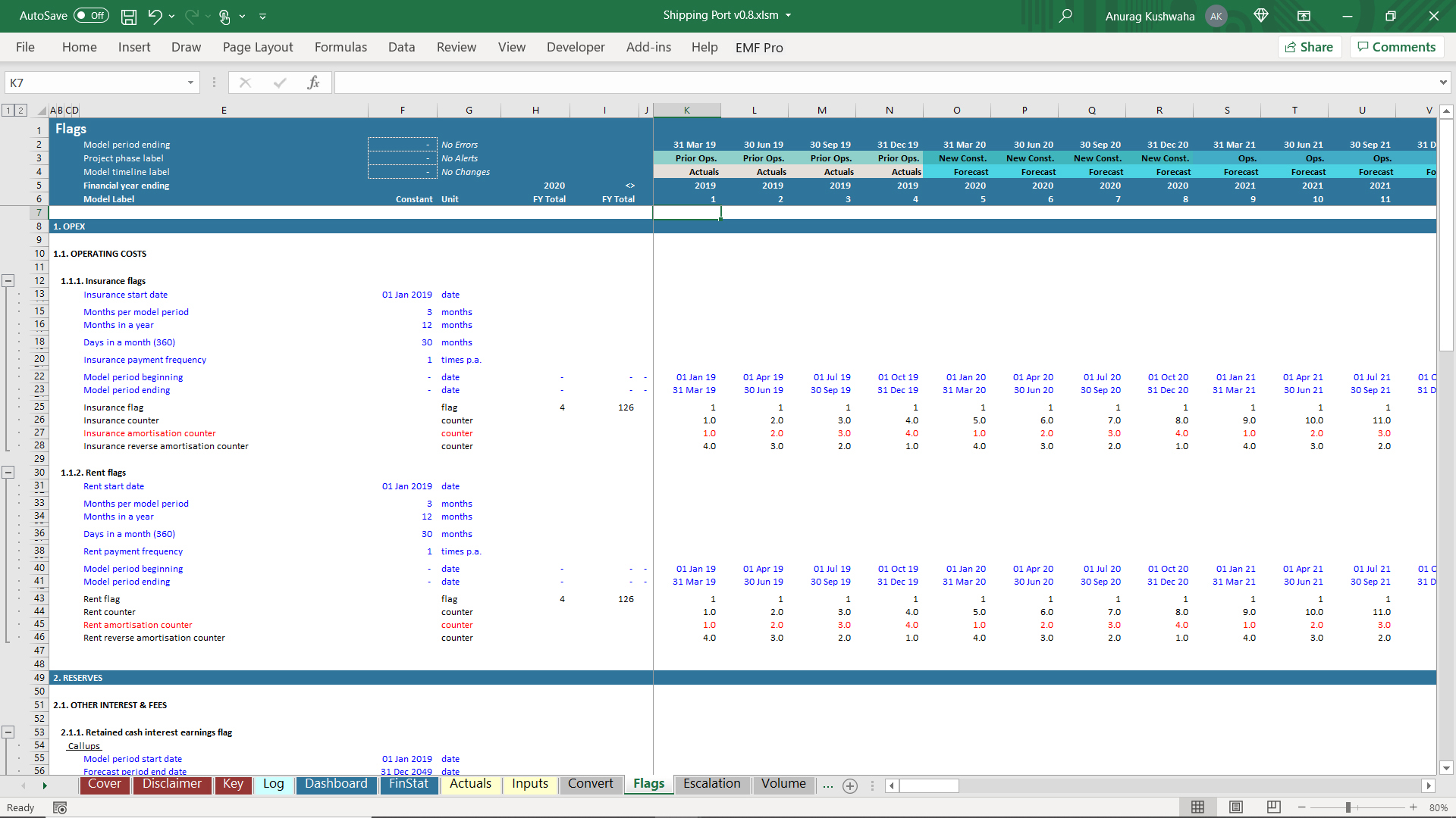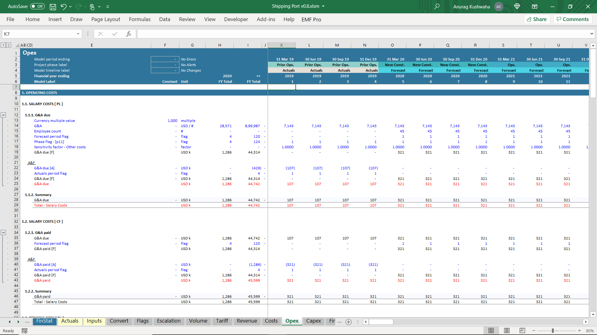 This is an excel model created for shipping port project, and was created using financial automation tool 'Ampere'. The model has the following features