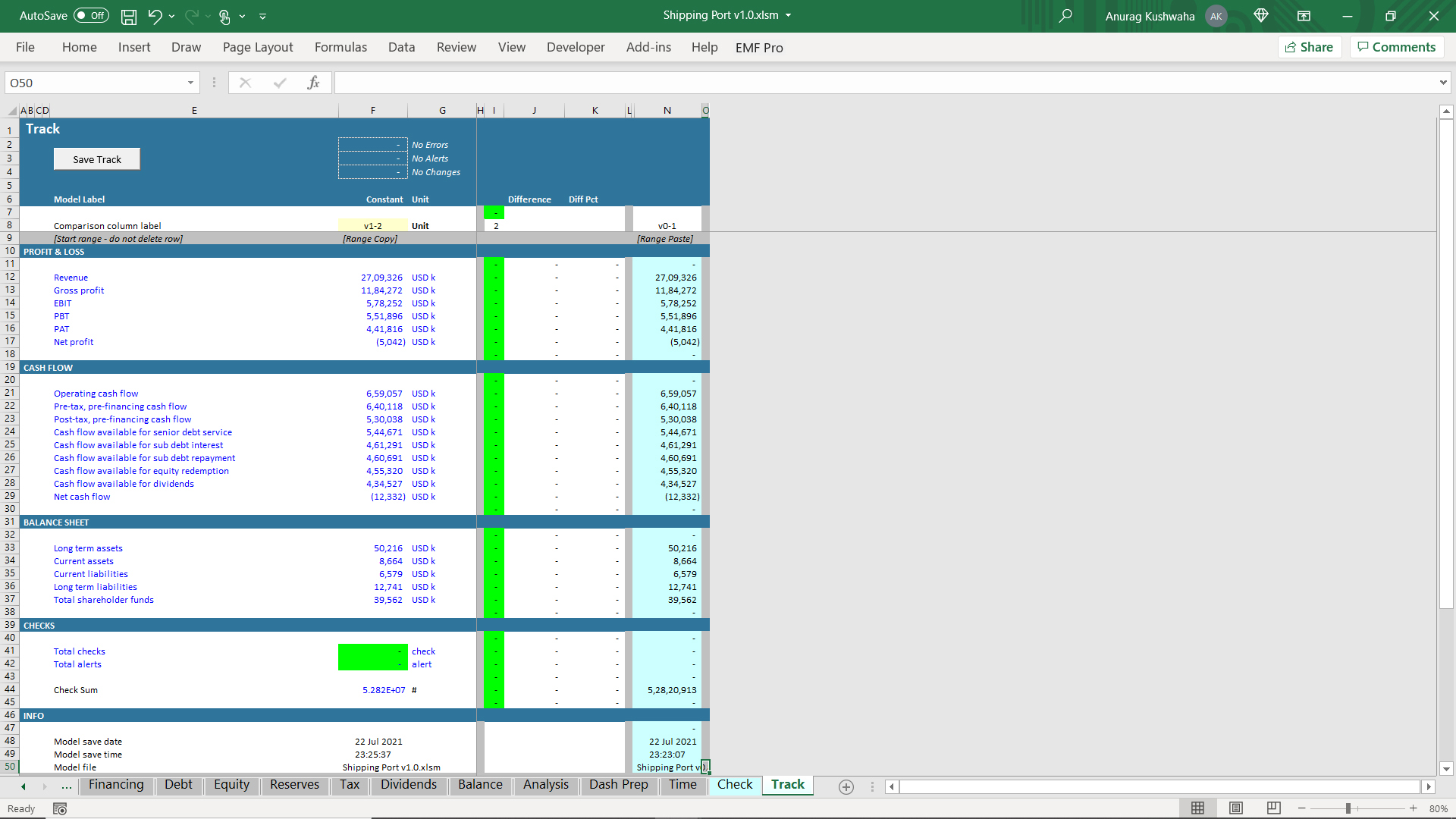 5. There is a "Check" sheet to track any mismatches in the model